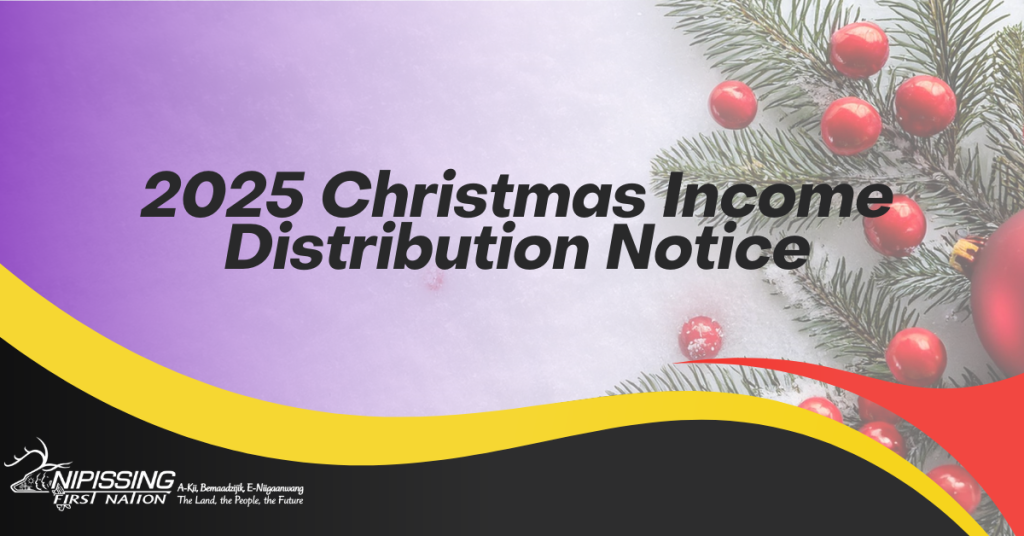 Nipissing First Nations members can receive their 2025 Christmas share beginning November 20, 2025 through to March 31, 2026.
