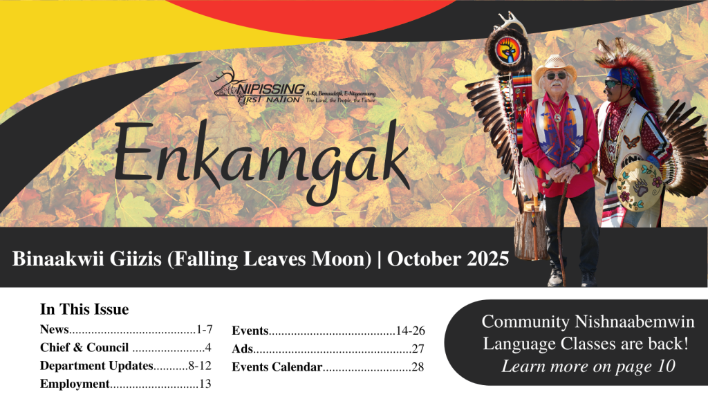 Read the October 2025 issue of Enkamgak and access past issues. If you have any questions, comments or suggestions, please contact: Hillary Shabogesic, Wiinmaaged Ezhwebak (Communications Manager)705-753-2050 ext. 1270 | [email protected]