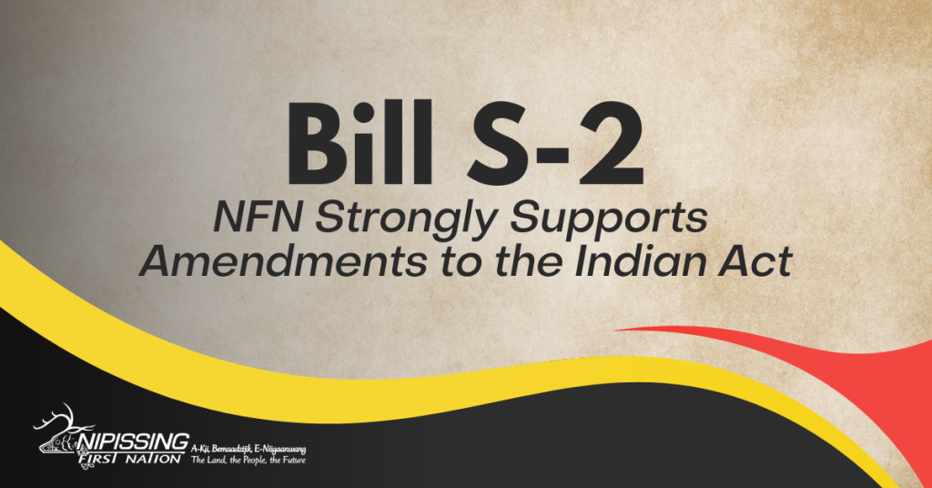Bill S-2, An Act to amend the Indian Act (new registration entitlements) is proposed legislation that aims to fix unfair rules in the Indian Act about who can be registered as a “status Indian.” On December 4, the bill passed in the Senate, but it is not law yet. Proposed by the Standing Senate Committee on Indigenous Peoples, the bill adds important changes to remove the second-generation cut-off (a rule that stops status after two generations of mixed status/non-status parents). These changes would welcome thousands of people back into First Nations across Canada, including families here in Nipissing First Nation.