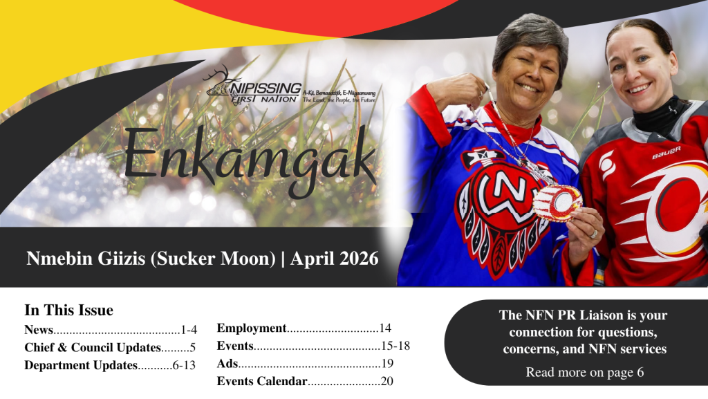 Read the April 2026 issue of Enkamgak and access past issues. If you have any questions, comments or suggestions, please contact: Hillary Shabogesic, Wiinmaaged Ezhwebak (Communications Manager)705-753-2050 ext. 1270 | [email protected]