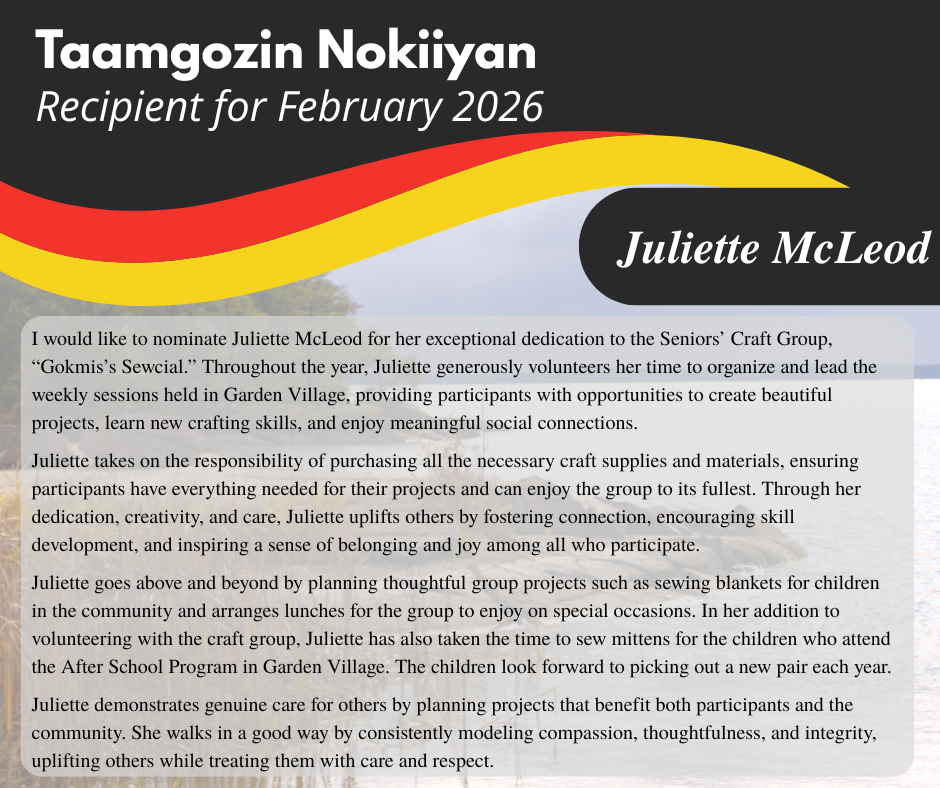 Recognize those who Walk the Good Path: Nominate a Community Member for Taamgozin Nokiiyan!