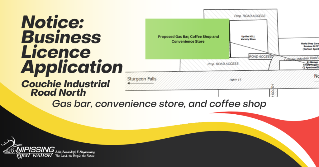 A business licence application was submitted for a proposed gas bar, convenience store, and coffee shop at Couchie Industrial Road North | See the full notice here: Download the Notice